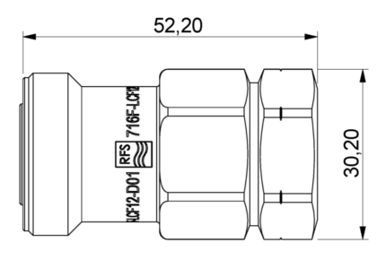 | Plating Outer/Inner | | NiTin/Silver | | Length | mm (in) | 52.2 (2.05) | | Outer Diameter | mm (in) | 30.2 (1.19) | | Inner Contact Attachment | | Basket | | Outer Contact Attachment | | 360° clamping |