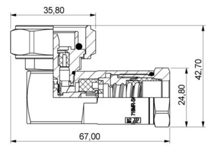 7-16 DIN Male Right Angle Connector for 1/2" Coaxial Cable, OMNI FIT™ standard, O-ring sealing