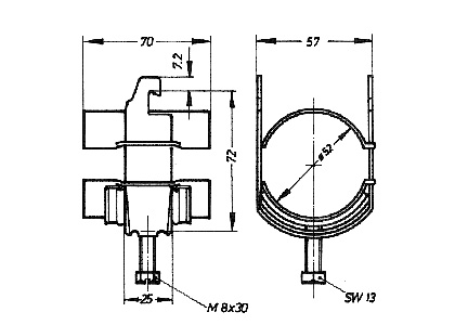 Cable hanger, non-insulated, bolt-on, for E60 elliptical waveguide