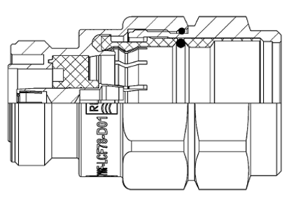 The 7-16 connector is the most rugged RF connection meeting all requirements even under the most severe environmental conditions. Sealing against outer conductor and jacket by means of O-Ring and 360° compression fit. Multifunctional, self-lubricating HighTech polymer assembly locks on cable corrugation, avoids electrochemical potential differences and compression-fits to the jacket.