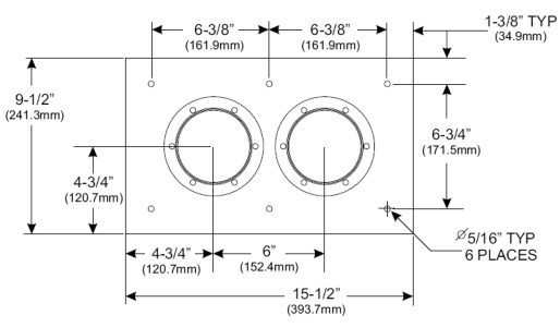 Feed through entry panel, 102mm (4"), 6 holes, 2x3