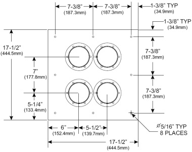 Feed through entry panel, 102mm (4"), 4 holes, 2x2