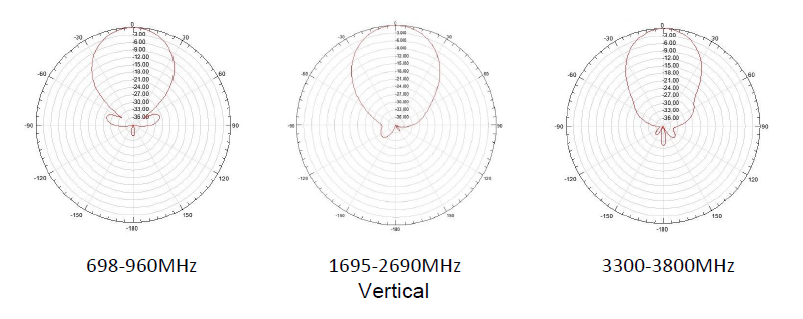 Wideband panel antenna supporting the frequency bands 698-960MHz /1695-2700MHz / 3300-3800MHz